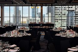 Our Level 17 function room boasts stunning views, featuring floor to ceiling windows. Guests can enjoy access to the private outdoor terrace and the elegant pre-function lounge for pre-dinner drinks and throughout the evening.